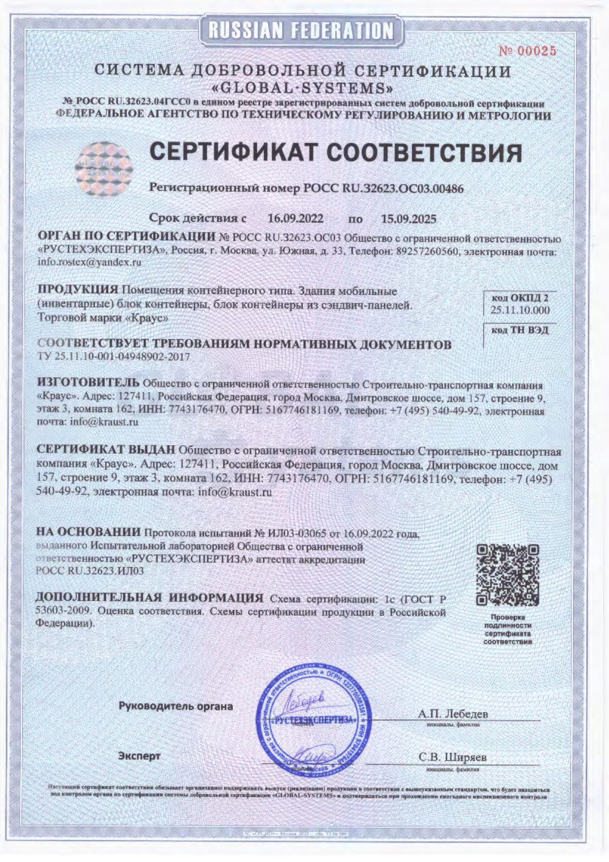 Дополнительно можно установить на объекте Сантехнический модуль 6.00х2.45 сэндвич Краус, который позволит совершить все необходимые гигиенические процедуры.