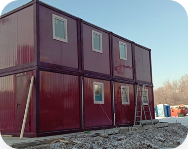 - Можно арендовать разные варианты бытовок: для хранения инструментов или временного проживания строителей на объекте.